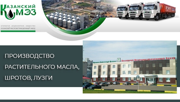 |  Вы хотите привлечь к себе внимание клиентов и получать регулярно прибыль? У нас есть выгодное предложение для Вас! | | | | | | АО Казанский маслоэкстракционный завод – это отличная возможность приобрести качественную продукцию от завода, занимающегося переработкой масличных культур. | | | | | Нашей продукцией является: • Шроты масляные и рапсовые • Масло подсолнечное и рапсовое нерафинированное • Лузга подсолнечника | | | | Наше предложение будет актуальным и выгодным для КФХ, фермерских хозяйств, птицеферм и птицефабрик, животноводческих хозяйств, сельскохозяйственных предприятий. | | | | | Более подробно познакомиться с нашей продукцией вы можете на сайте:  | | | | | | Почему именно нашу продукцию необходимо покупать? Удобно • Быстрая доставка | | | | | • Мы предлагаем всем компаниям услуги собственного автотранспортного предприятия Надежно • Участие в профессиональном дегустационном конкурсе «Премия ВНИИЖ» • Участие в международном смотре качества масложировой продукции Выгодно • Низкие цены Многие у нас заказывают данную продукцию по привлекательным ценам и увеличивают свою прибыль, поторопитесь и Вы оформить заявку!  | | | | |